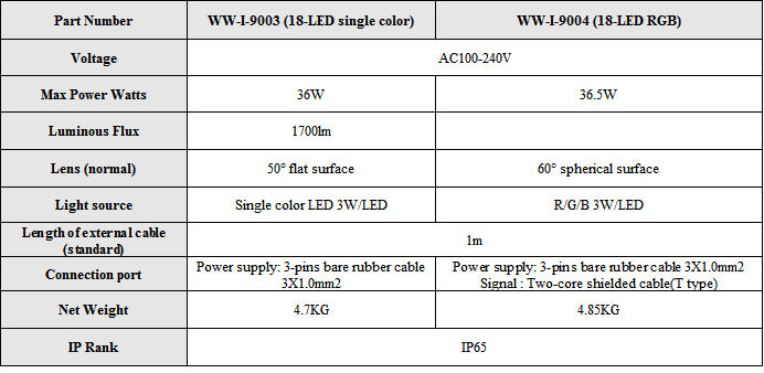 WW-I-9004---18-LED, single 2W, RGB, AC100-240V